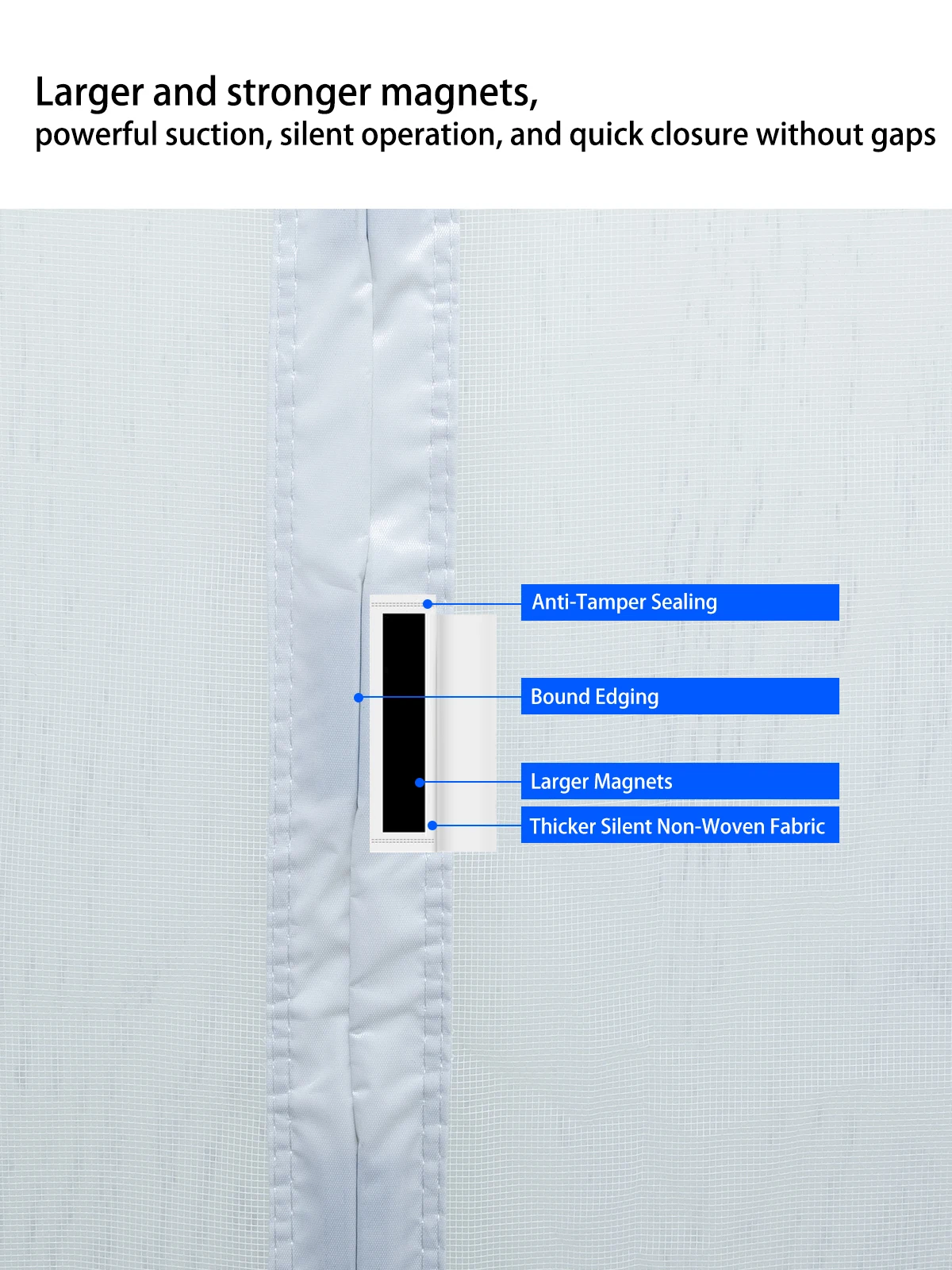 1 Set White Magnetic Mosquito and Insect Screen Door - Modern Invisible Mesh with Automatic Closing for Kitchen and Living Room